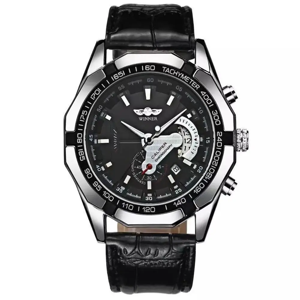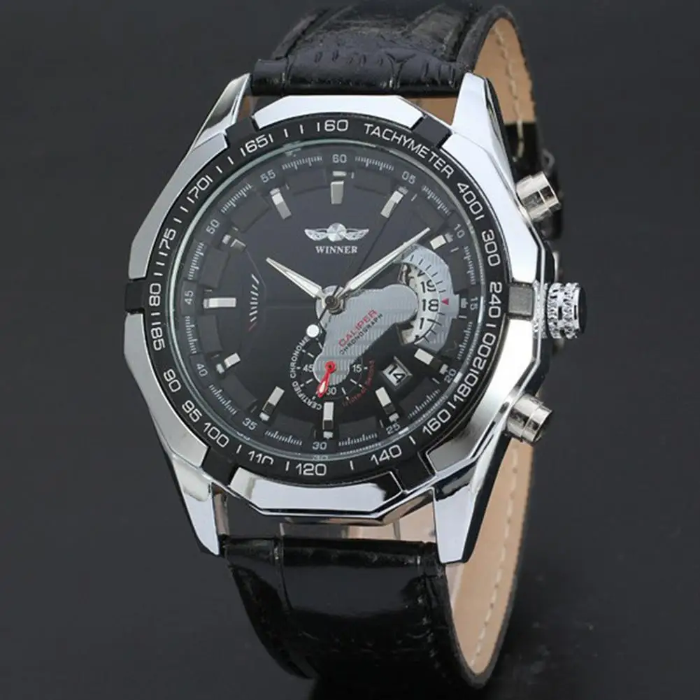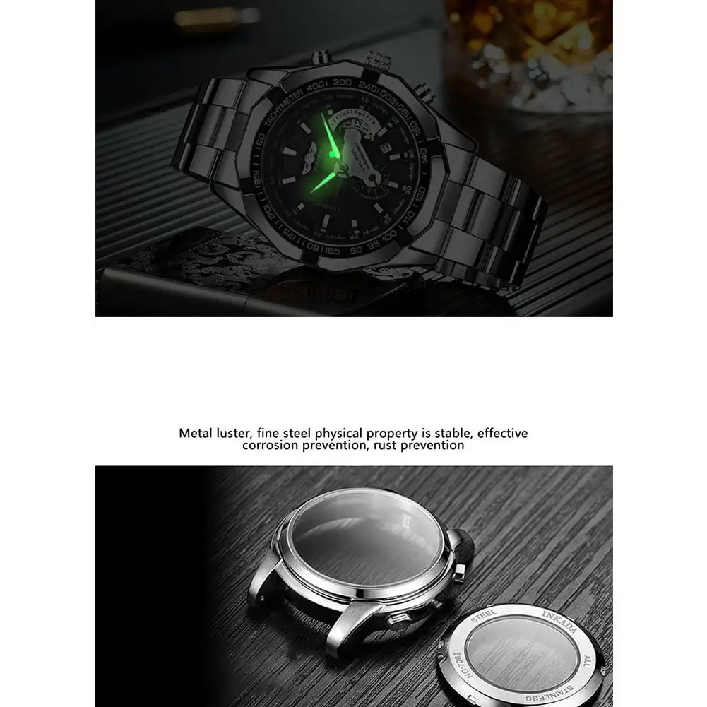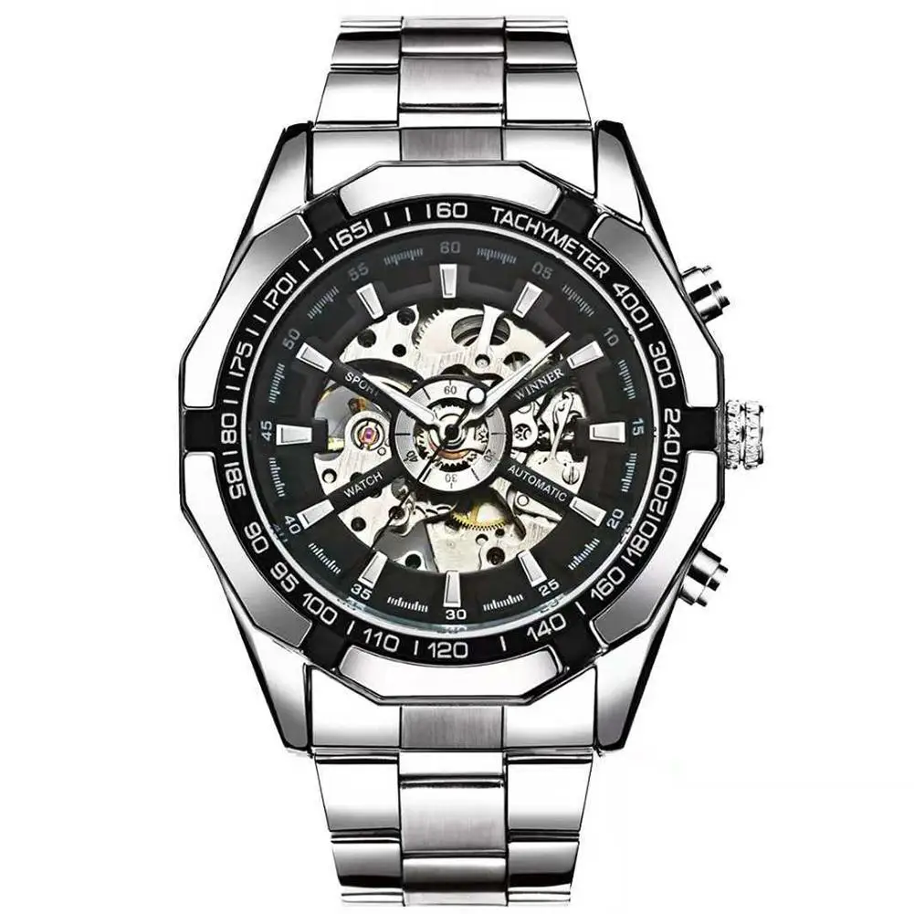 Men Watches Classic Stainless Steel Skeleton Mechanical Watch Fashion Cross Wristwatch