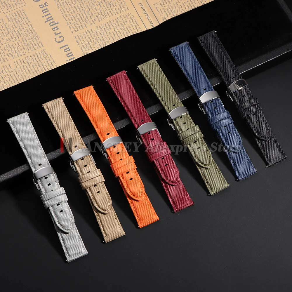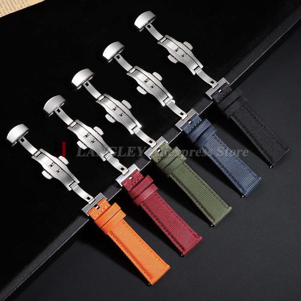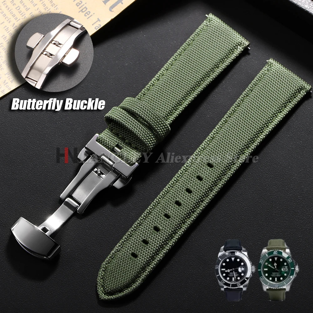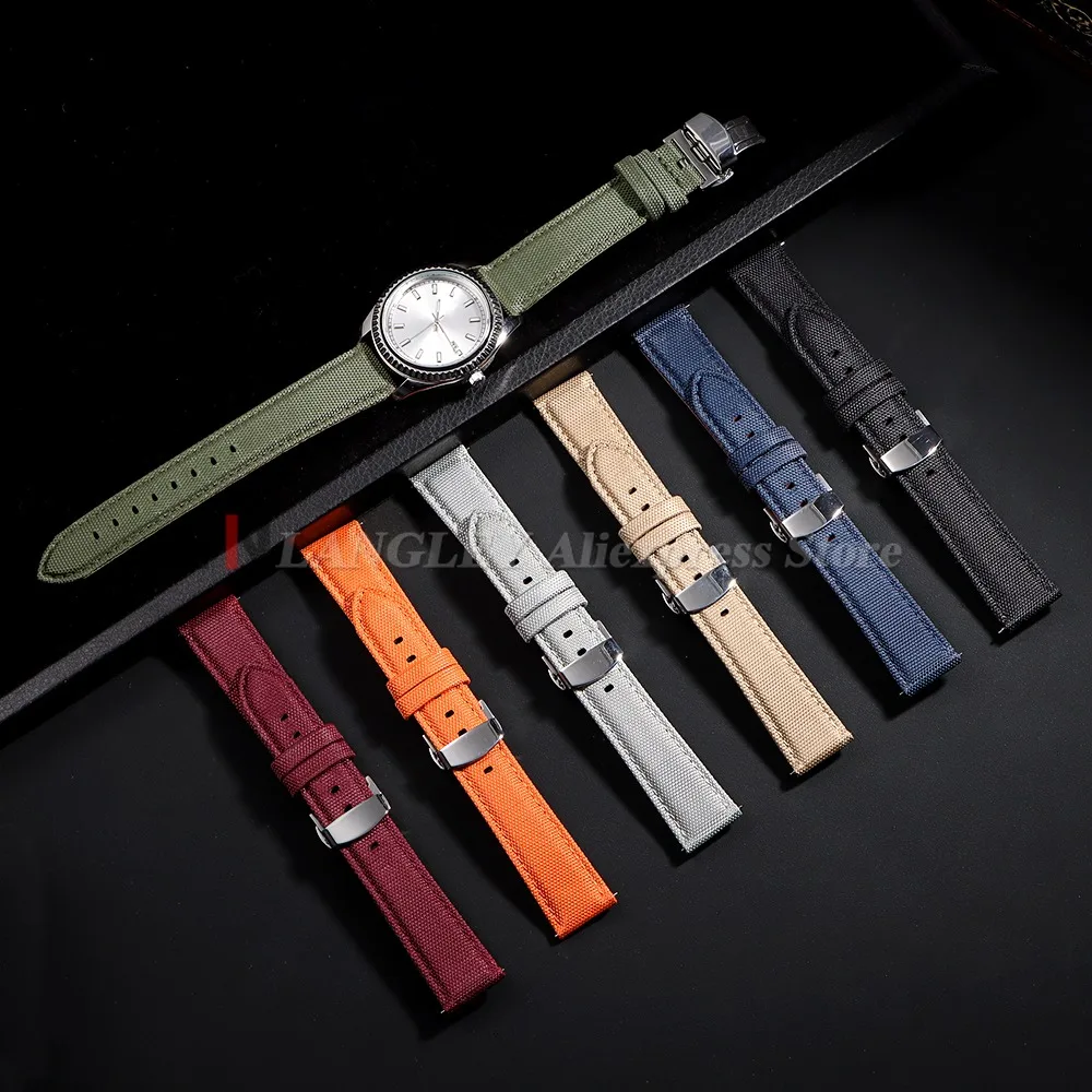 Sailcloth Watch Strap 20mm 22mm for Omega for Seiko Business Nylon Butterfly Buc