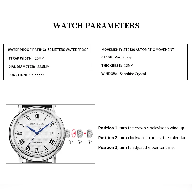 2.316L stainless steel body, sapphire glass, ST2130 movement for the most luxurious configuration