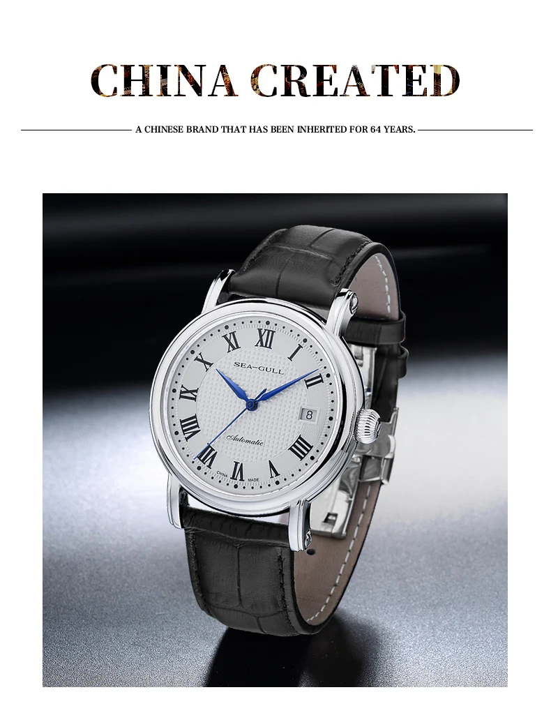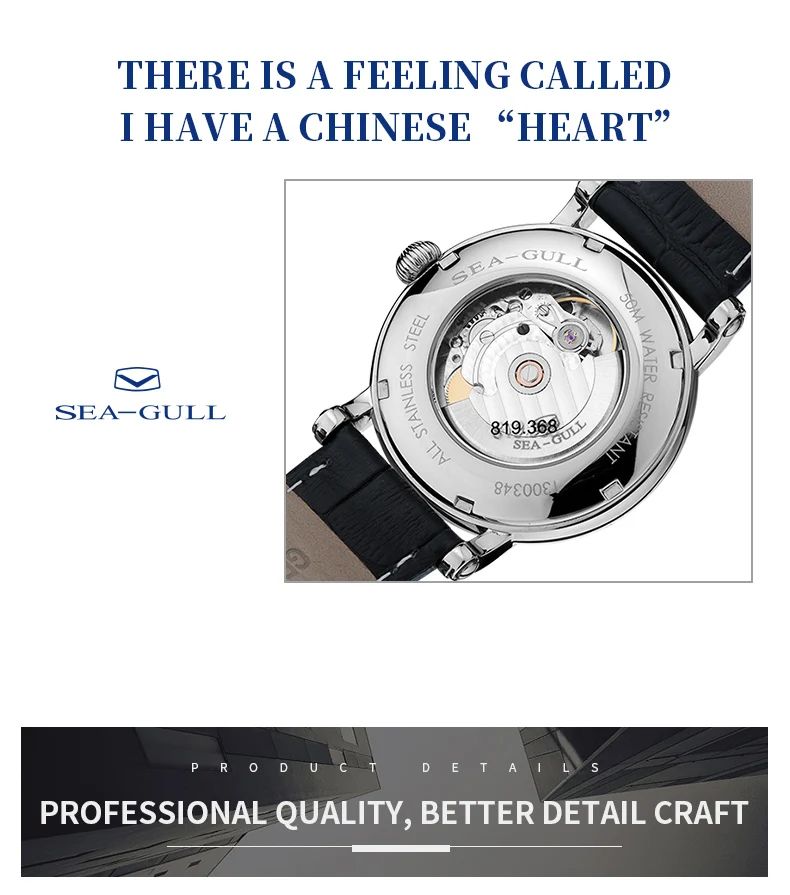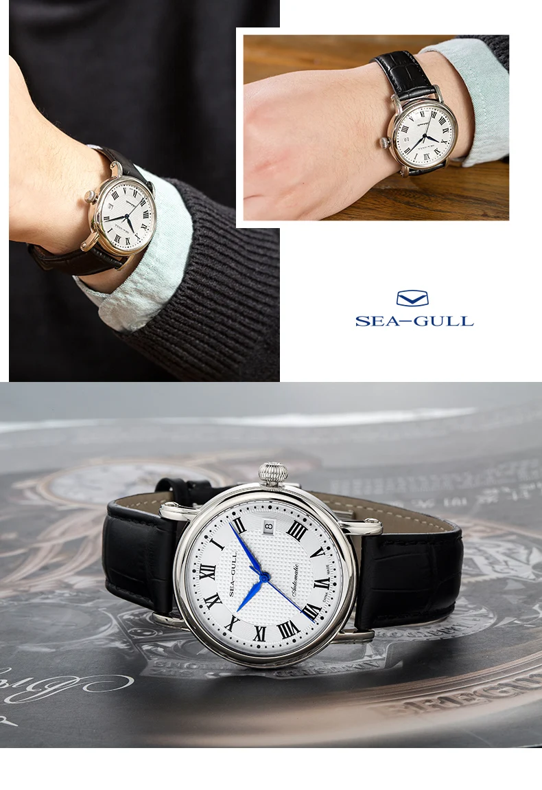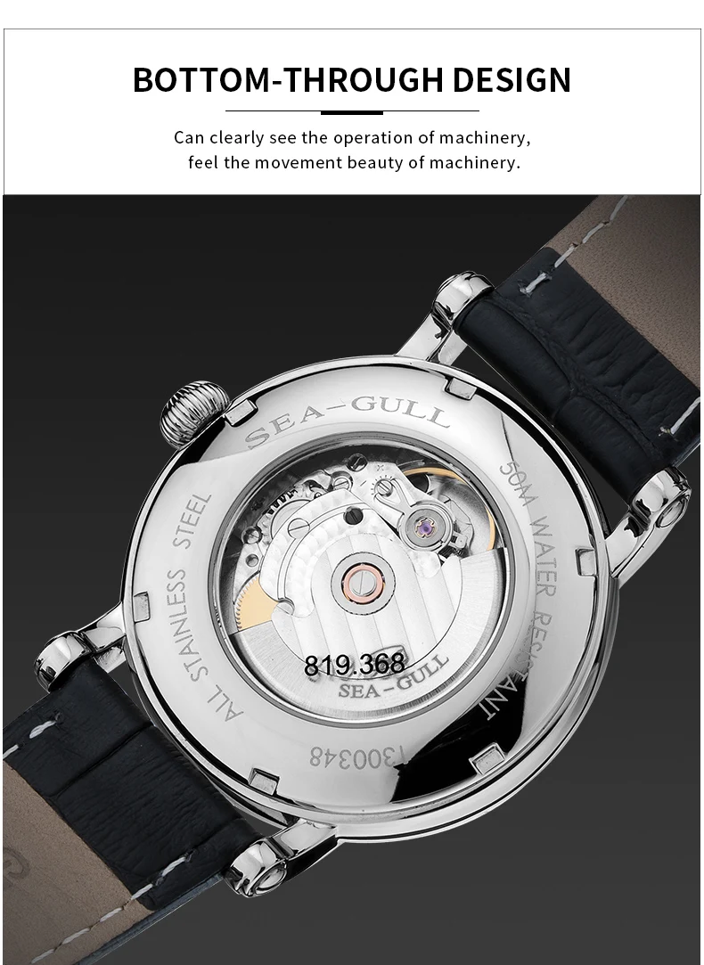 SEA-GULL Business Watches Men's Mechanical Wristwatches 50m Waterproof Leather Valentine Male Bracelet Clasp Watches 819.368